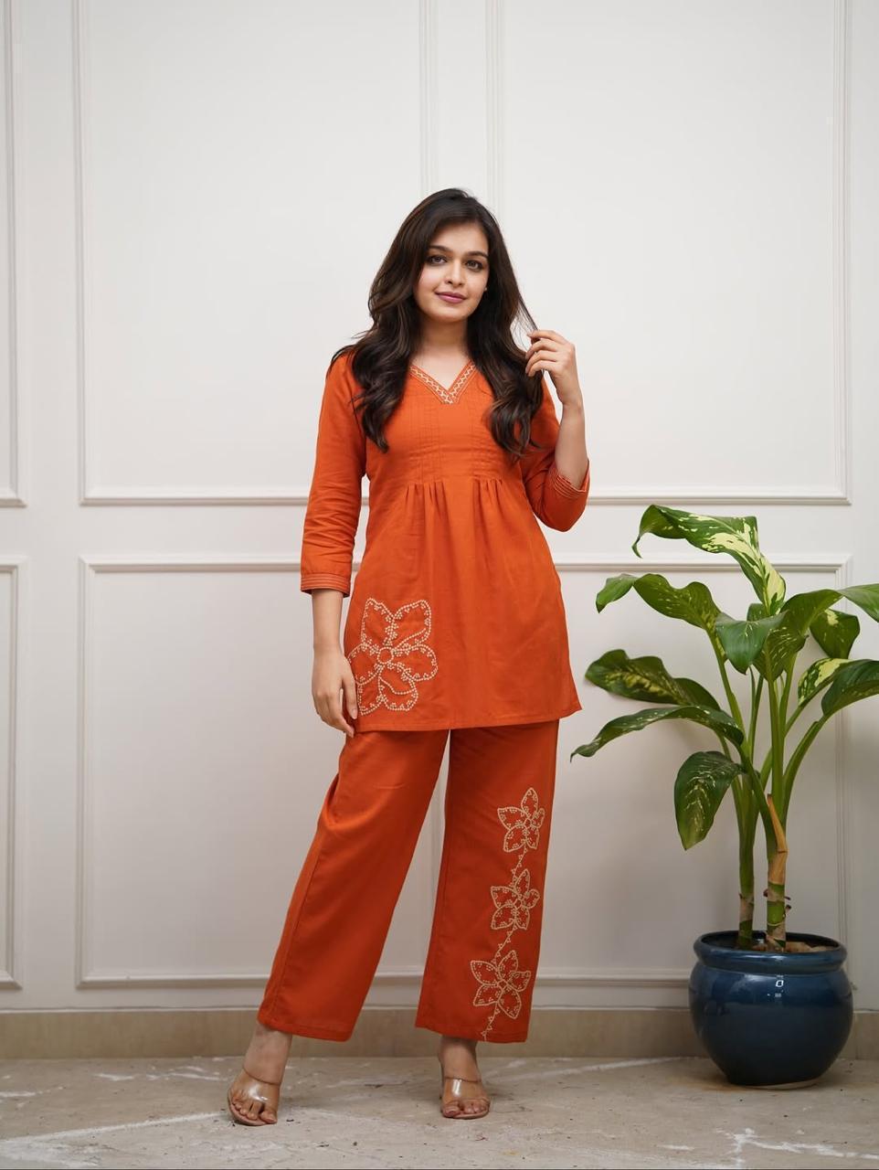 👗 *_Type - Cotton 60x60 Coard set with Two pockets in pant, Complete Embroidery work