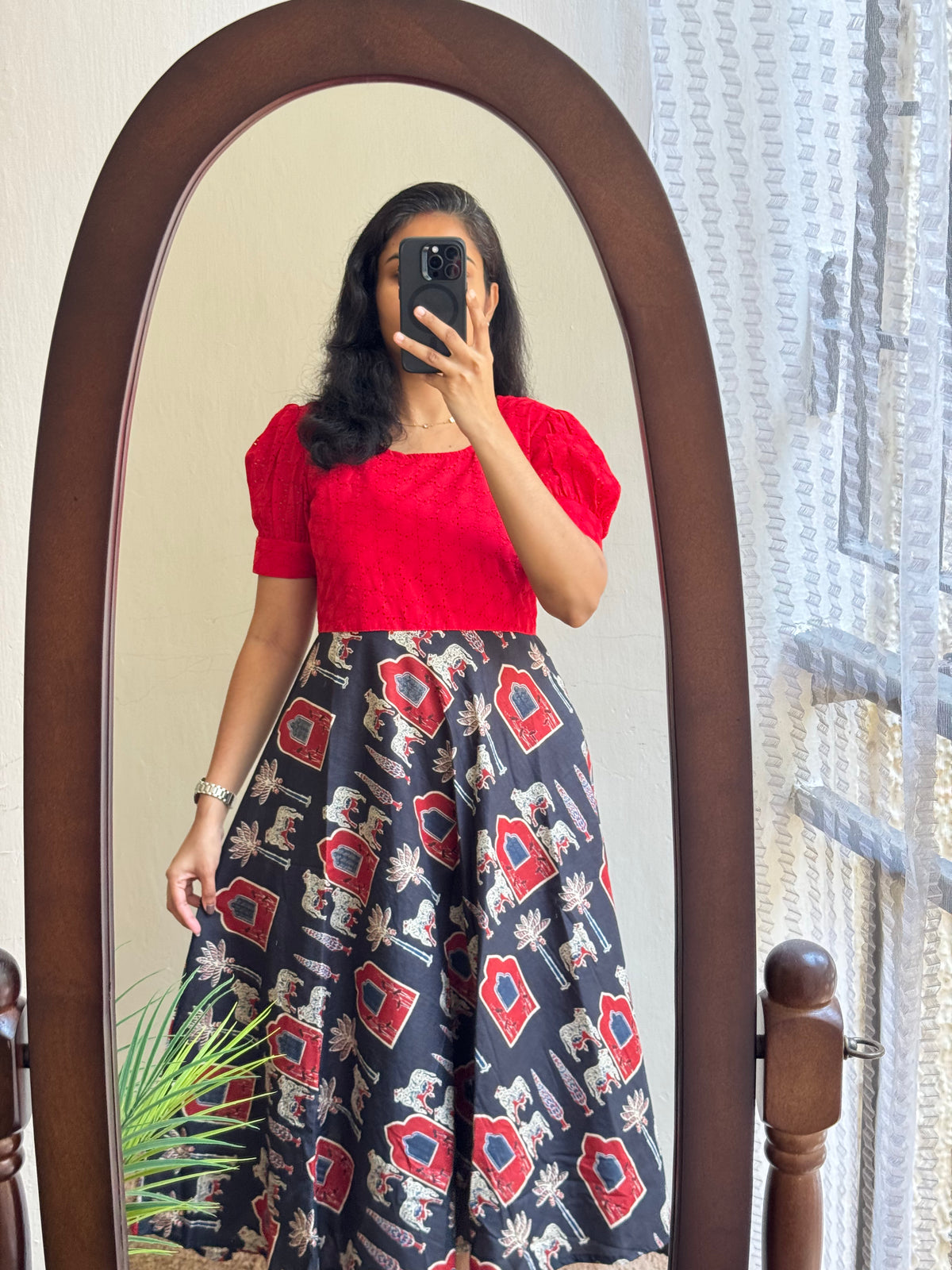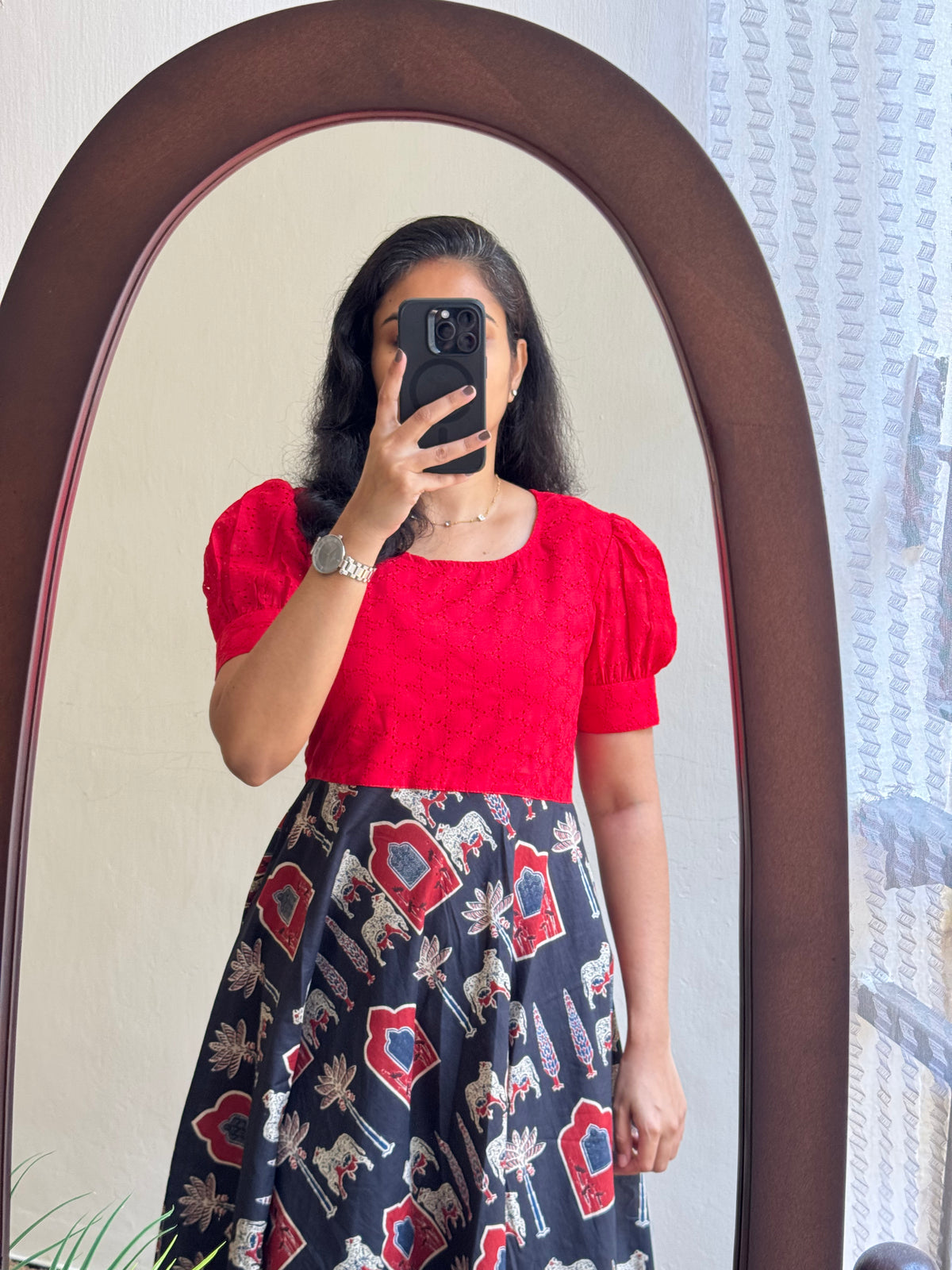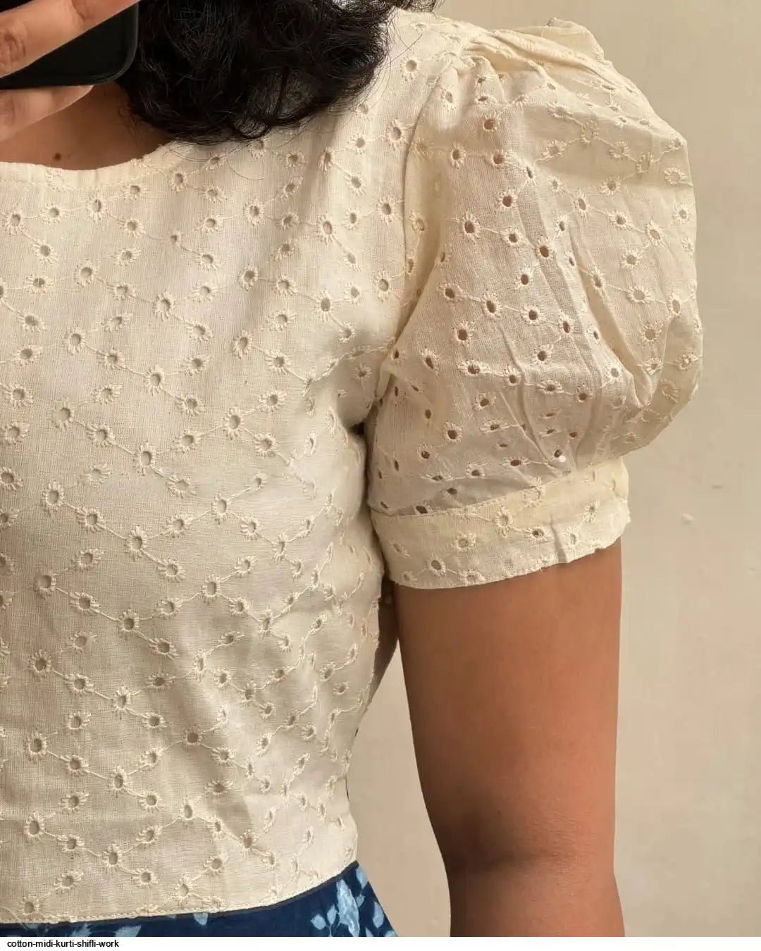 INDIGO CHARM COTTON MIDI KURTI SHIFLI DETAILS WESTERN DRESS